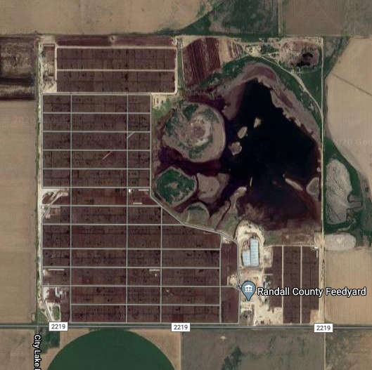 A texas feedlot from space I randomly pulled off of GoogleThe feedlot is the aspect of beef production I assume most people see as “unethical”, “factory farming”, etc… but are the cattle suffering?  My guess would be “no”, because cattle generally want three things: to be surrounded by other cattle, to be fed and watered, and to be reasonably comfortable (sounds familiar?) and the feedlot provides for these.   Now, what got me thinking about this whole matter of “Ethical vs. Aesthetic Beef” was a cold, rainy, windy night in November a day or two before we were sending a handful of animals to Quinn’s.   I thought to myself, “Self, which animals are ‘happier’: those under a roof with a big pile of corn in front of them, or mine, laying down in wet field of grass with 60km winds coming out of the north?”