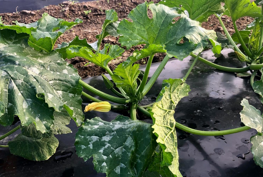 Applying some horticultural black magic, here is some zucchini transplanted on May 12…